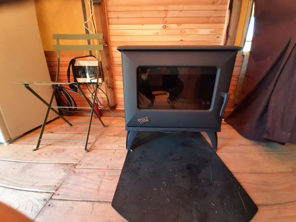Cinq places, deux chambres, sur plancher bois, poêle à bois, entièrement équipée, coin cuisine sur la terrasse de 10m2. Le confort canadien en Ardèche. Location disponible à partir du 1er juin 2021.
