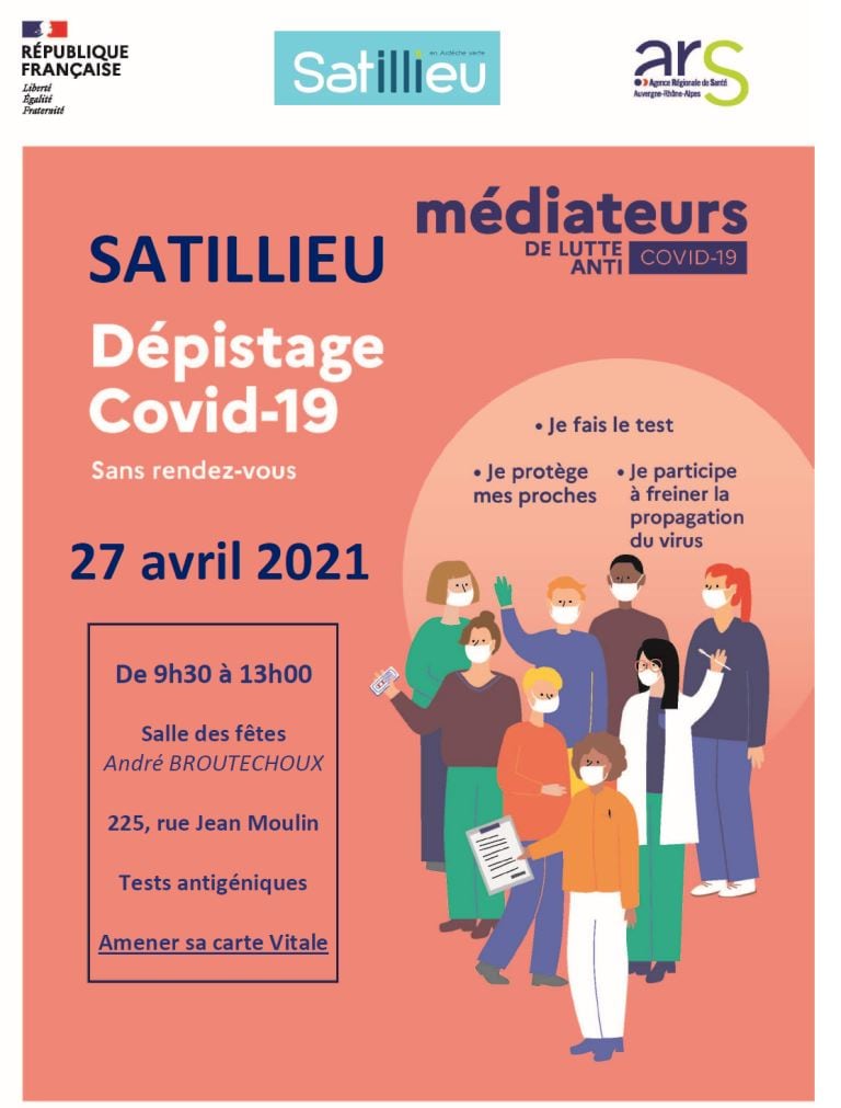 Dépistage mardi 27 avril Satillieu, vaccination à Annonay pour les plus de 55 ans