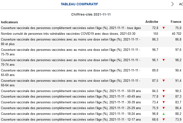 Sachant que, selon la Direction de la recherche, des études, de l’évaluation et des statistiques, il y a maintenant onze fois plus de décès parmi les personnes non vaccinées que parmi les vaccinées, il est utile de connaître le pourcentage d’Ardéchois vaccinés selon les tranches d’âge.