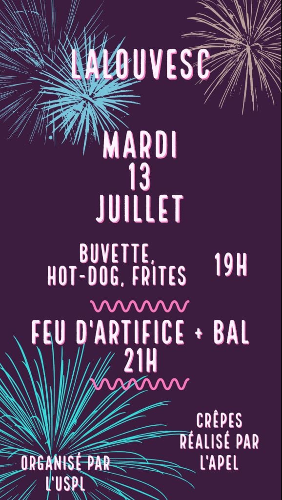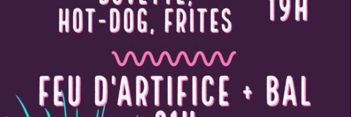 Fête nationale : 13 juillet, feu d'artifice, bal, buvette 5 juillet 2021 Ouverture de la buvette à 19h, bal et feu d'artifice à partir de 21h