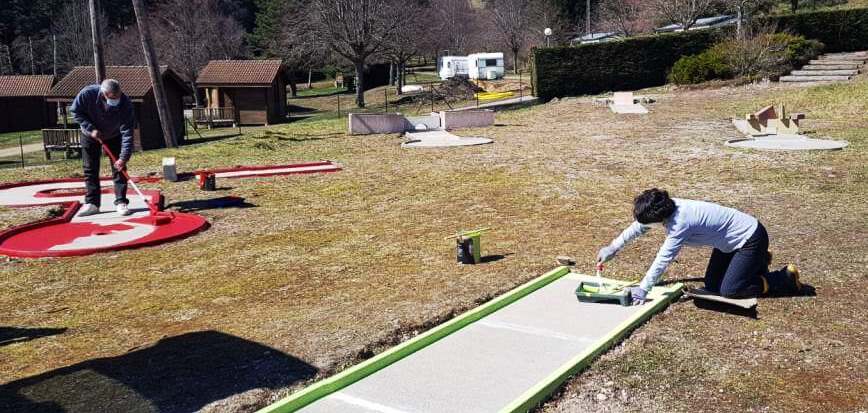 Nettoyage du tennis, peinture sur le mini-golf, réparations et ménage des refuges… une journée productive