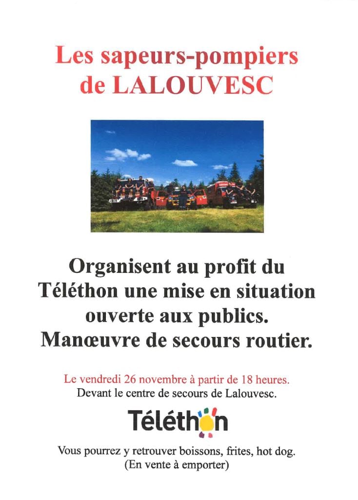 A l’occasion du Téléthon, les sapeurs-pompiers de Lalouvesc organisent une mise en situation ouverte au public : manoeuvre de secours routier.