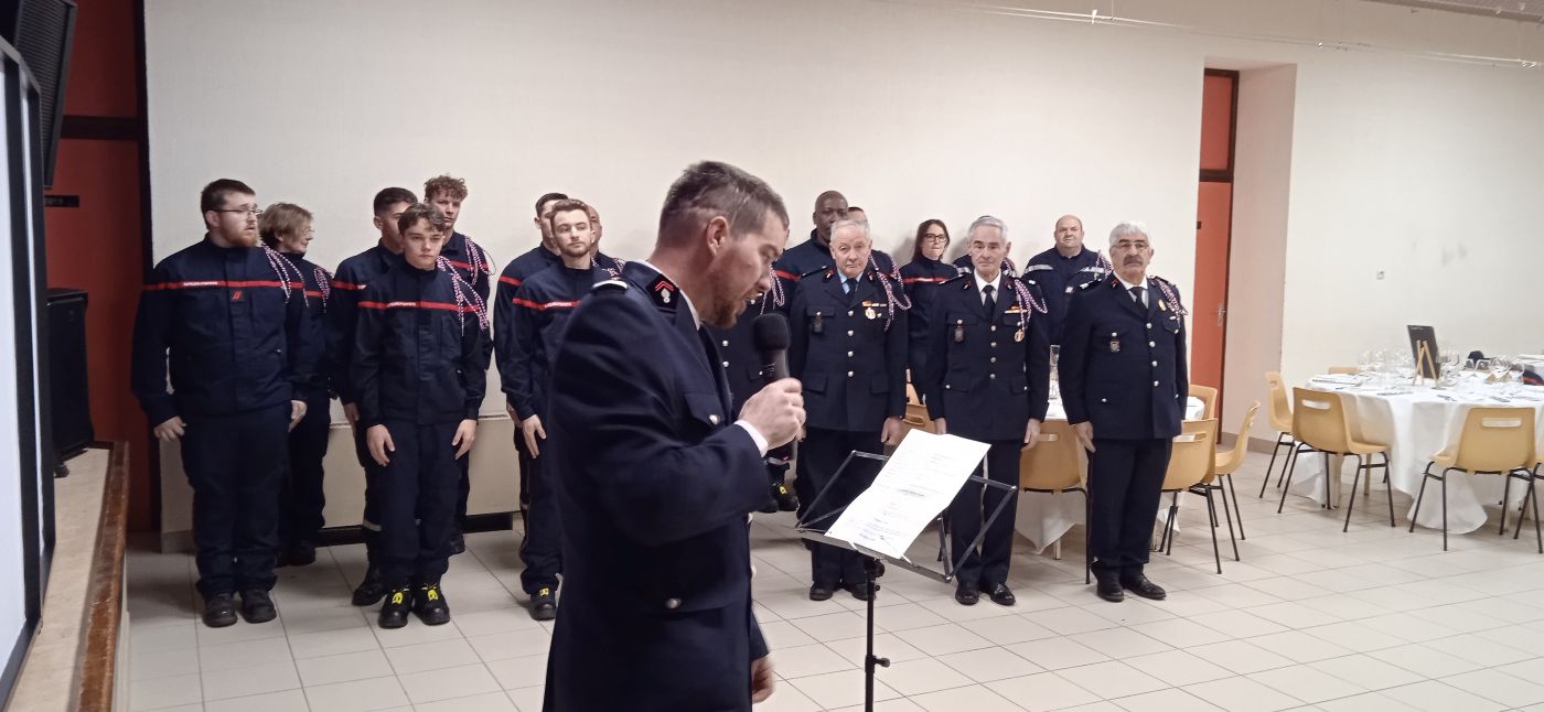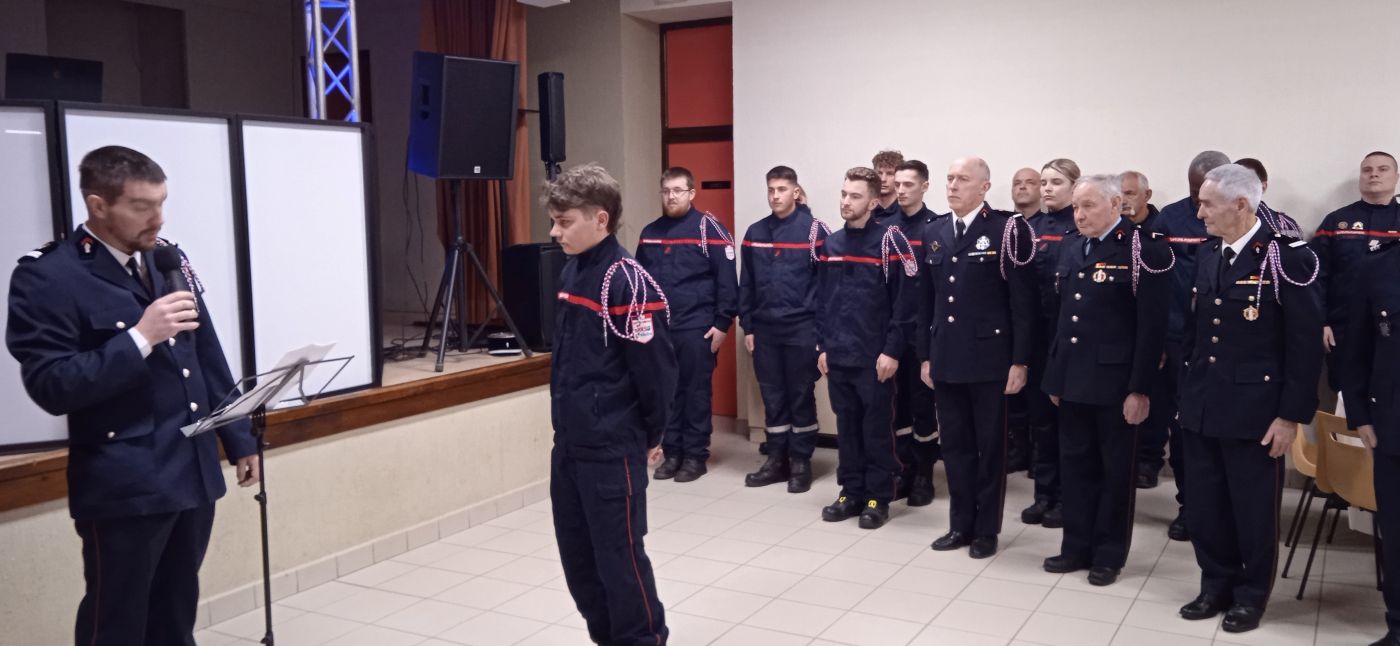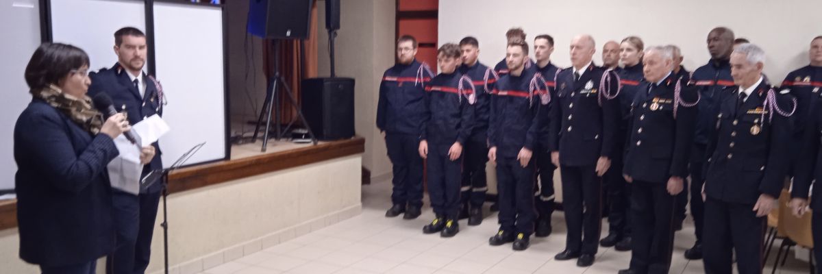 Devant le commandant Saurel, chef du groupement Nord et représentant la direction départementale, la représentante des amicales, Catherine Gauthier, le major Ludovic Le Gaillard, commandant de la gendarmerie de Satillieu et St Félicien, la conseillère départementale Laëtitia Bourgeat et Jean-Michel Salaün représentant la mairie, plusieurs pompiers ont reçu un diplôme, suite à des formations : deux nouveaux arrivés en 2024, sapeurs 2ème classe, Guillaume Fayard et, le plus jeune, Baptiste Roche ; Loréna Morh, sapeur 1ère classe ; Xavier Mohr, caporal ; Luc Bodescot, adjudant-chef.