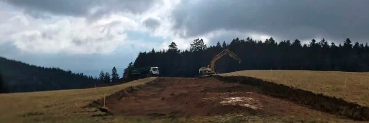 Le chantier vient de démarrer. Il durera cinq semaines pour la viabilisation du lotissement. La terre dégagée servira à niveler les plateformes du camping qui en ont bien besoin.