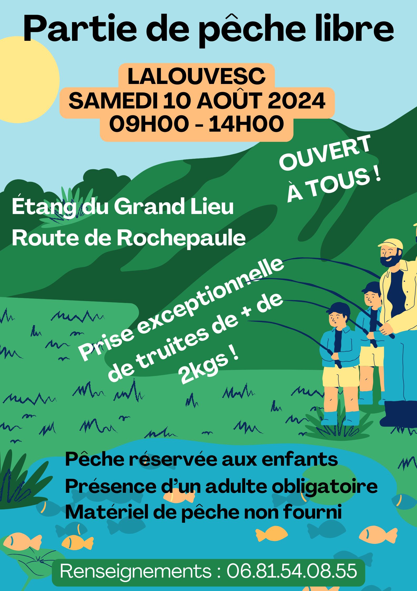 Une partie de pêche libre aura lieu le samedi 10 août 2024 de 9h à 14h à l’étang du Grand Lieu, route de Rochepaule.