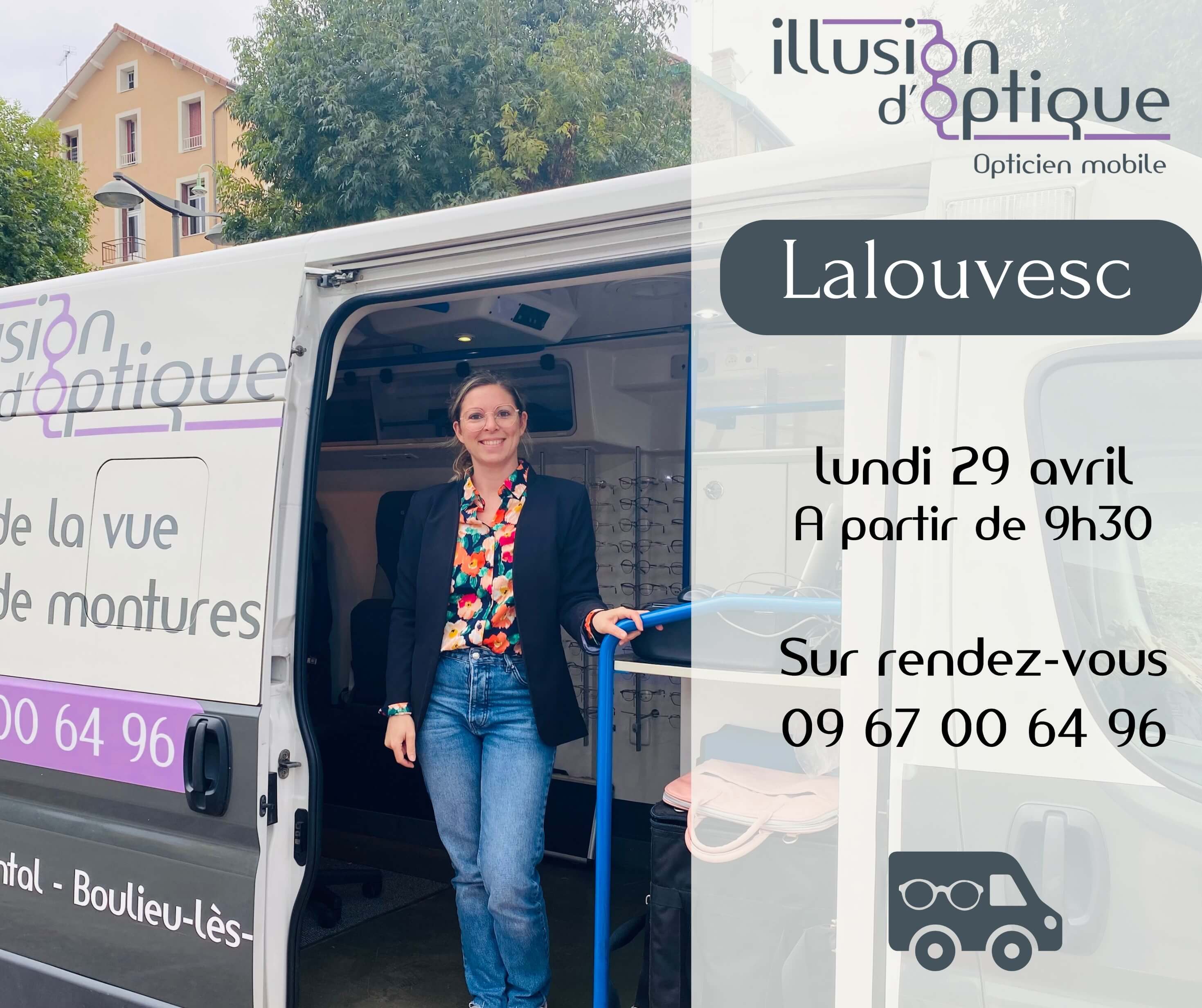 Passage camion Illusion Optique 29 avril 14 avril 2024 A partir de 9h30 place du Lac sur rendez-vous Le passage du camion Illusion Optique aura lieu le lundi 29 avril 2024 à partir de 9h30, à la place du Lac Prendre rendez-vous au 09.67.00.64.96