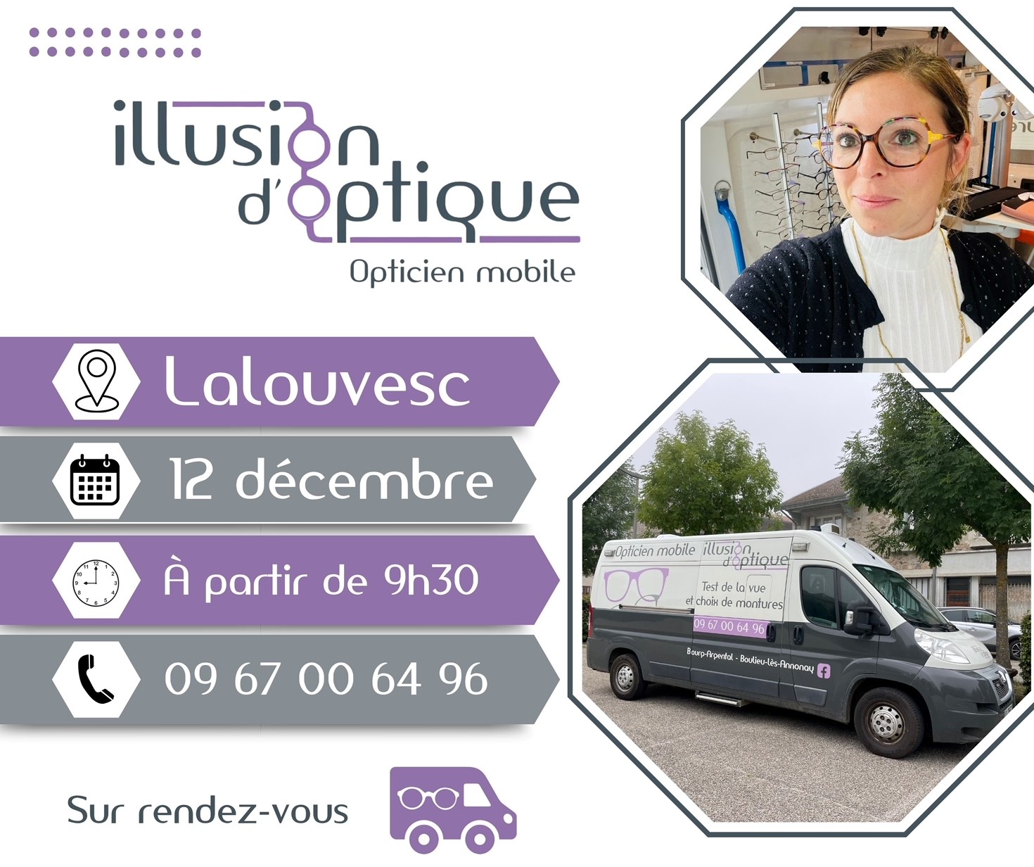 Prochain passage du camion Illusion d'optique 27 novembre 2024 12 décembre à partir de 9h30 sur rdv Le 12 décembre à partir de 9h30 sur rendez-vous au 09 67 OO 64 96.