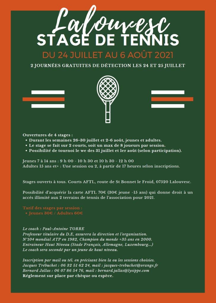 Stages de tennis du 24 juillet au 6 août 15 juin 2021 L'AFTL propose des stages de formation ou de perfectionnement au tennis