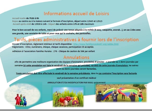 Renseignements auprès de Carole Guilloux : cguilloux@fede07.admr.org ou 06 81 50 19 26
