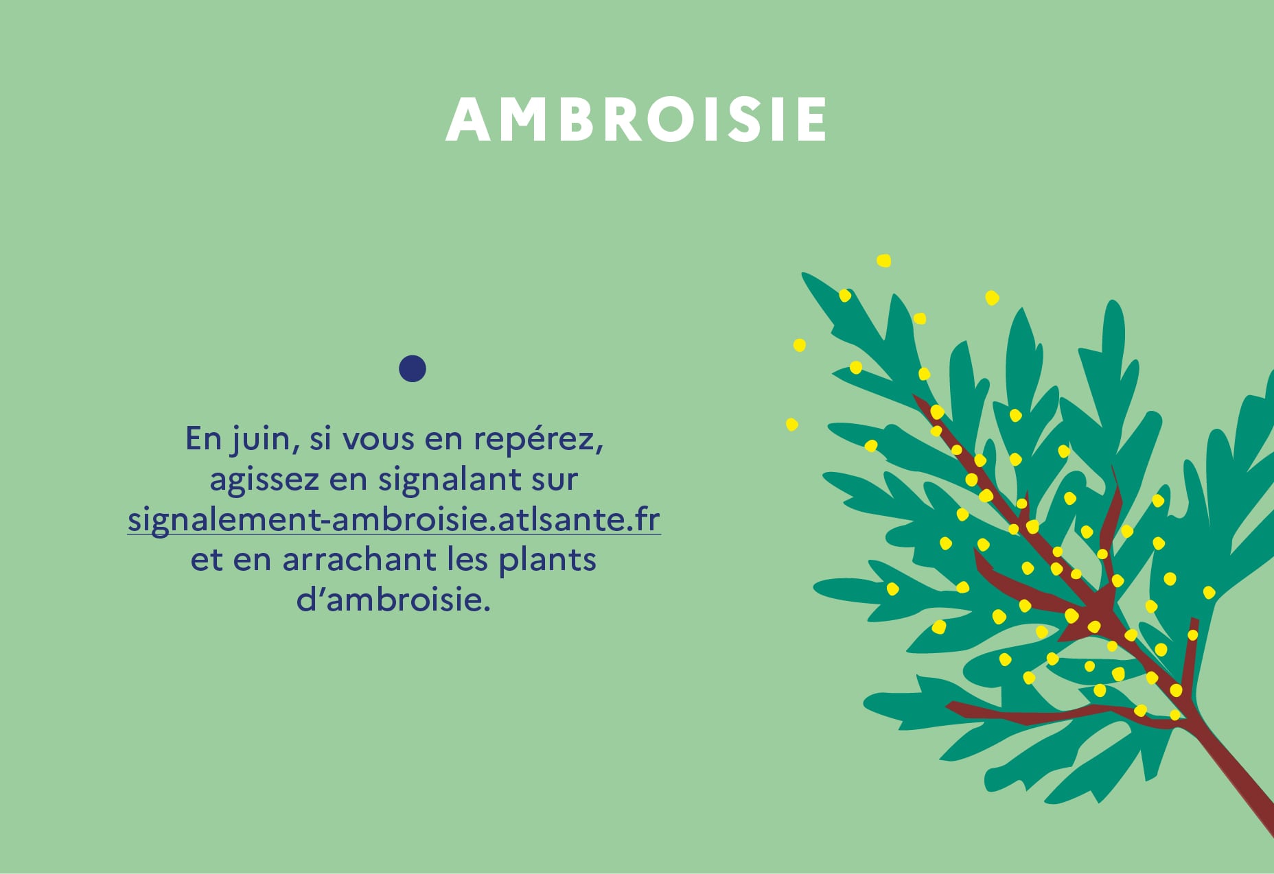 L’ARS de la région propose un calendrier pour alerter sur les bonnes pratiques concernant l’habitat et la santé . Pour le mois de juin, la suggestion concerne les produits ménagers. Un autre calendrier alerte sur les bonnes pratiques face à l’environnement . Pour le mois de juin, la suggestion concerne l’ambroisie.