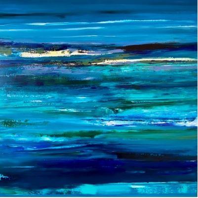 Souvent ce sont les paysages du bord de mer qui couvrent la toile… Là où je vis, je respire chaque jour l’odeur d’iode et de goémon… et m’absorbe dans ces vastes horizons de mer, de dunes…