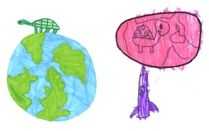 Notre thème annuel est le voyage autour du monde et nous nous occupons, en classe, de notre tortue Gulli. Les enfants ont donc décidé de la mettre en personnage principal de notre histoire.