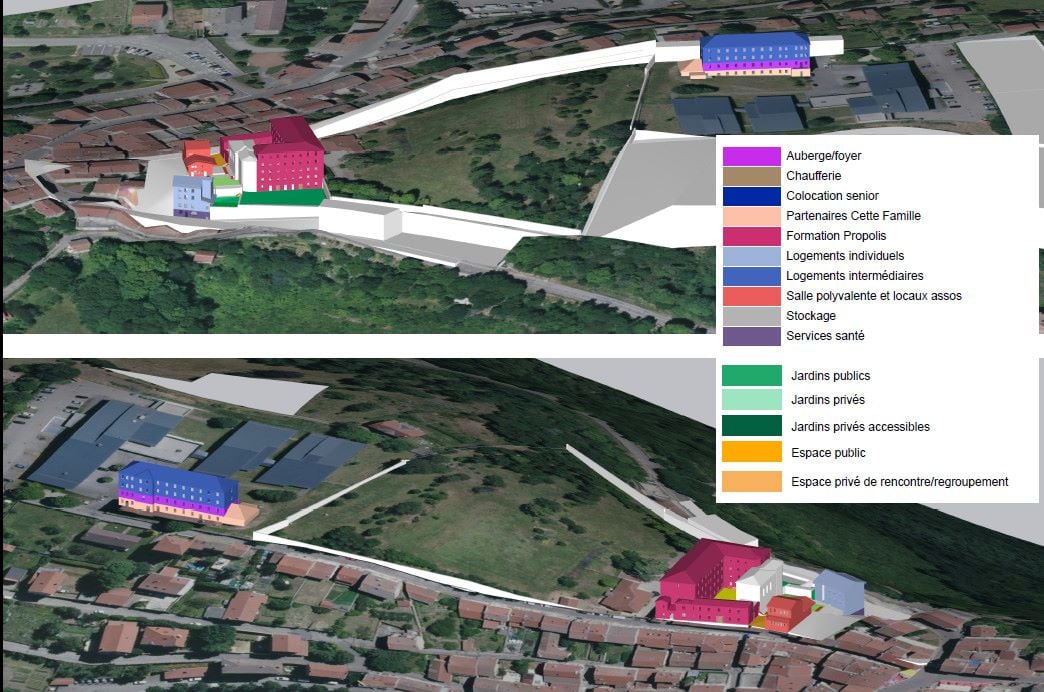 Dans le cadre des études en cours, les bureaux d’études ont proposé différentes possibilités d’implantation de ces porteurs de projet dans les bâtiments, mais aussi d’autres types d’occupations possibles et complémentaires : du logement, une salle à destination des associations de la commune, une zone de stockage de matériaux pour les associations, des locaux pour du personnel de santé, une chaufferie bois collective…