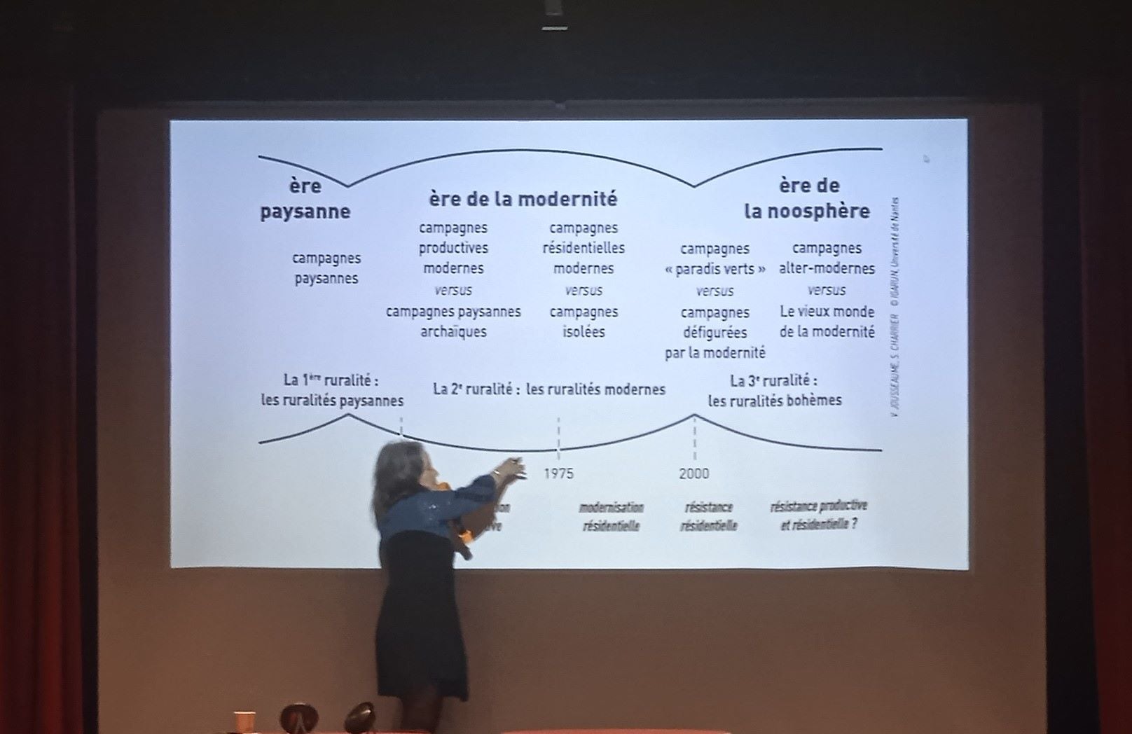 Tout le monde doit s’y préparer, et les villages ont peut-être un rôle de premier plan, particulier, positif, à jouer. C’est en tous cas l’avis de Valérie Jousseaume de l’université de Nantes. Sa proposition est résumée de façon un peu abstraite sur la diapositive ci-dessous :