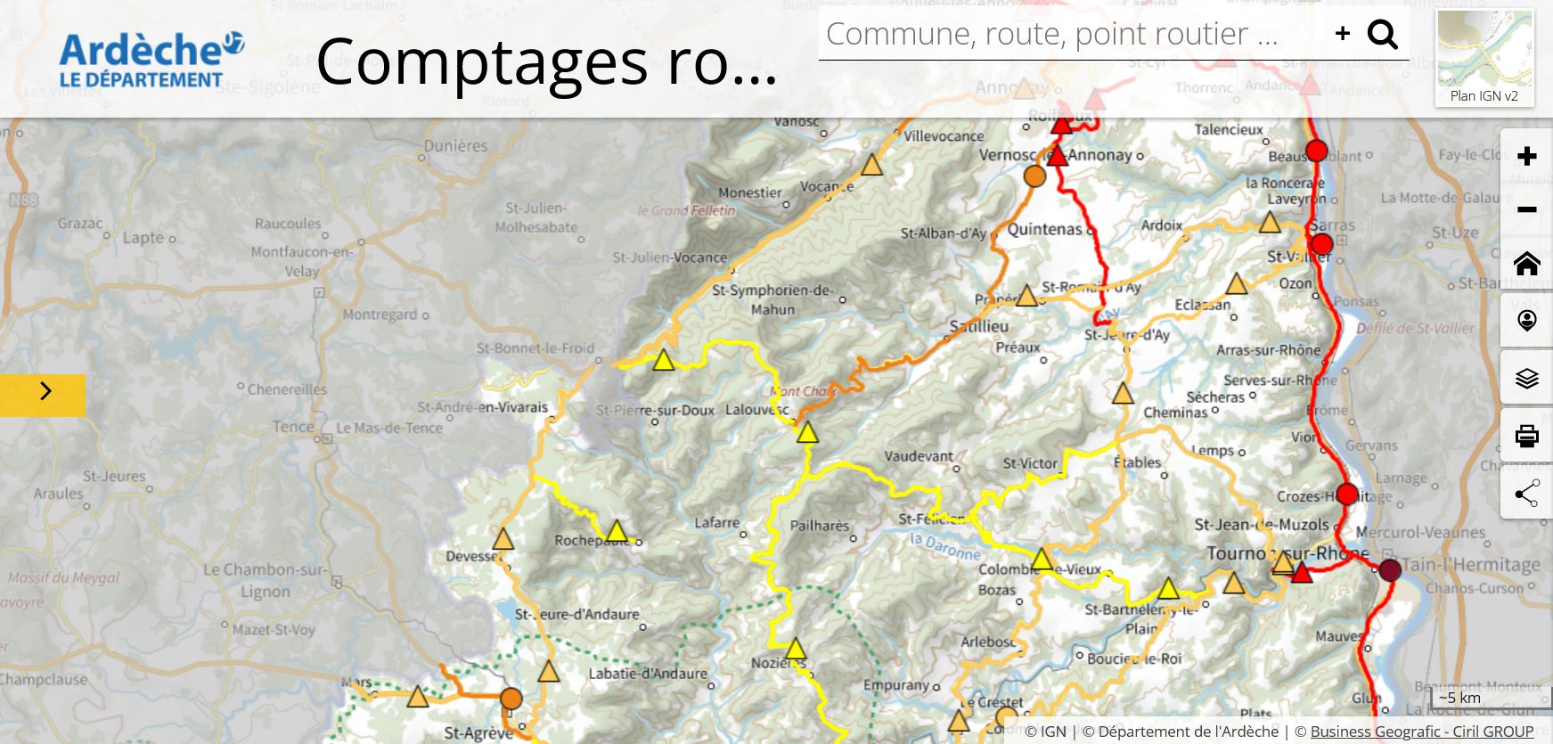 Savez-vous qu’il existe une carte qui rend compte des flux de circulation routière sur l’Ardèche ?