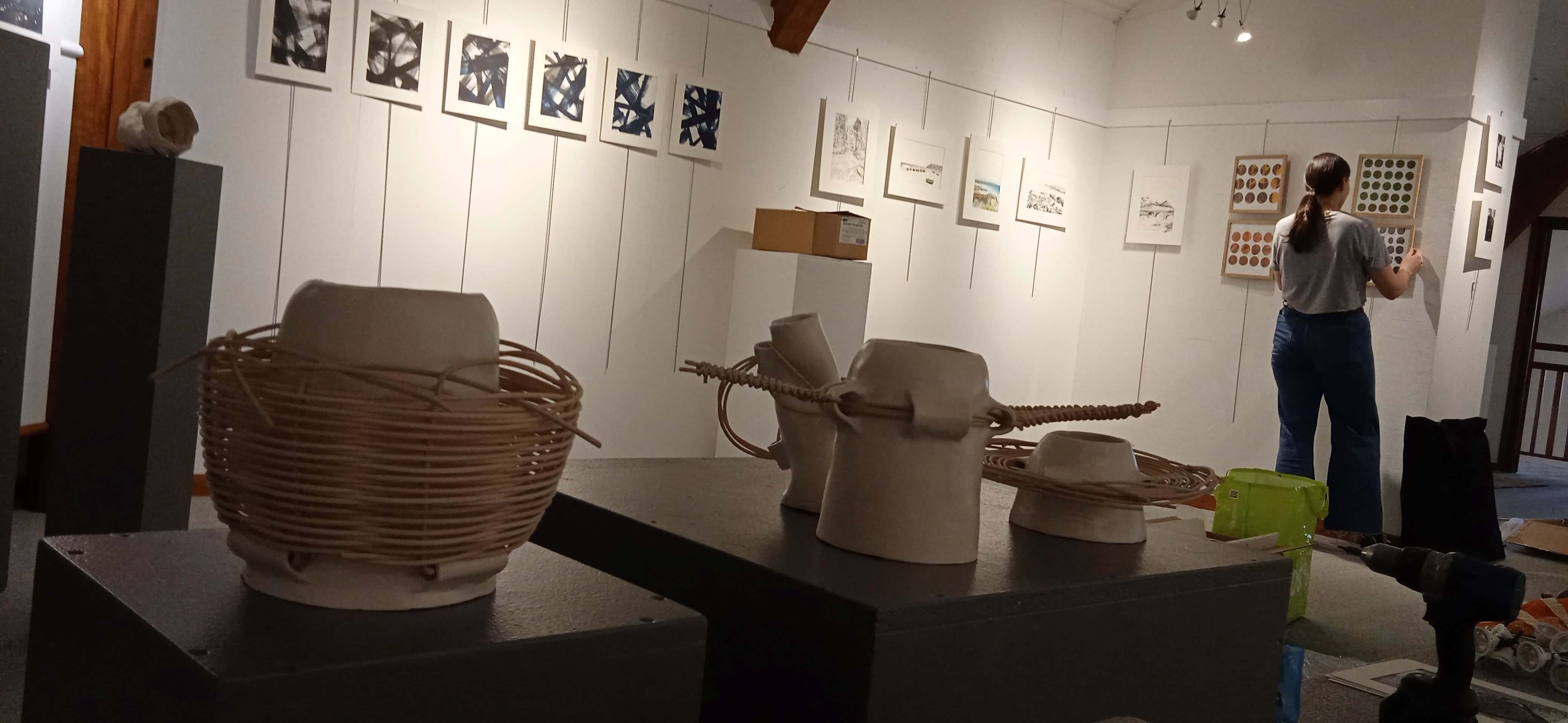 Les bénévoles ont nettoyé le bâtiment à tous les étages, construit des supports, repeint murs et supports, cousu et accroché les grands rideaux pour préparer le CAC et la chapelle à l’accueil des artistes. Ces derniers sont arrivés avec leurs œuvres qu’il a fallu accrocher et installer selon la scénographie prévue. Ci-dessous quelques photos des derniers jours de l’installation au CAC avec les bénévoles et les artistes.
