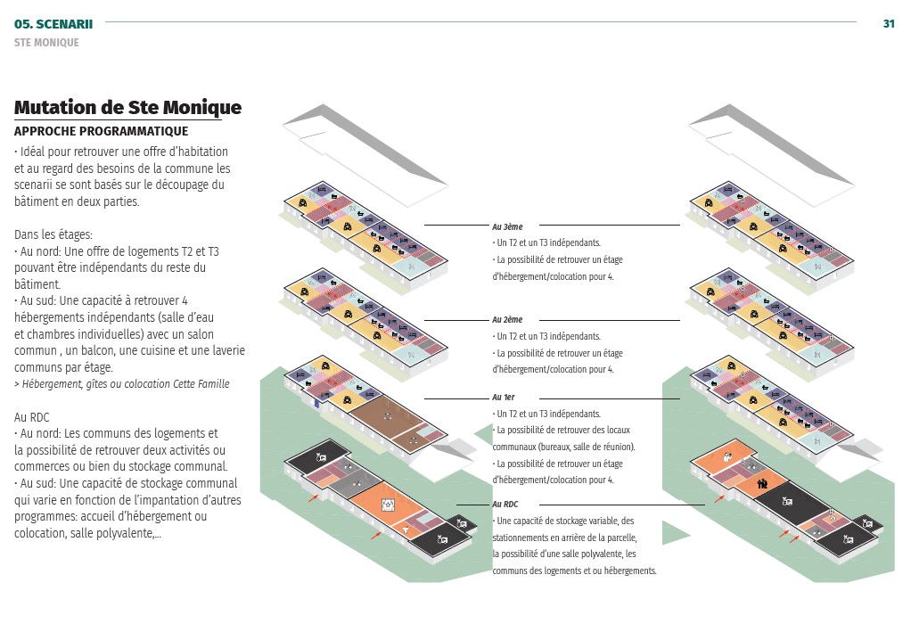 Suite à l’étude pilotée par le SCOT sur les bâtiments de Ste Monique et le couvent du Cénacle, un appel à manifestation d’intérêt (AMI) pour Ste Monique, comprenant les détails du bâtiment et des hypothèses sur son aménagement, va être lancé pour trouver un acheteur potentiel.