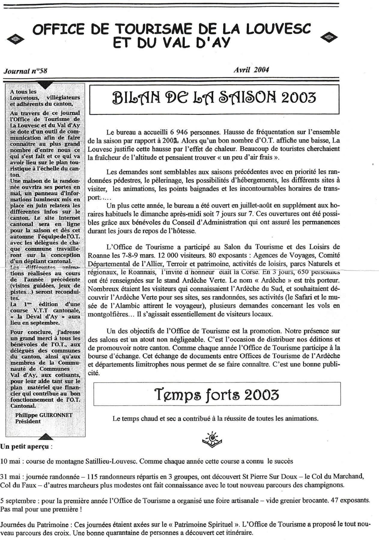 Associer cette année, le nom de Lalouvesc à celui d’Annonay et de Peaugres dans le cadre de la communication Destination Ardèche Grand Air donne du liant aux richesses humaines et patrimoniales du Nord Ardèche. Faites votre cueillette dans notre nouveau site internet, et venez nous rendre visite nous aurons plaisir à vous offrir notre premier magazine.