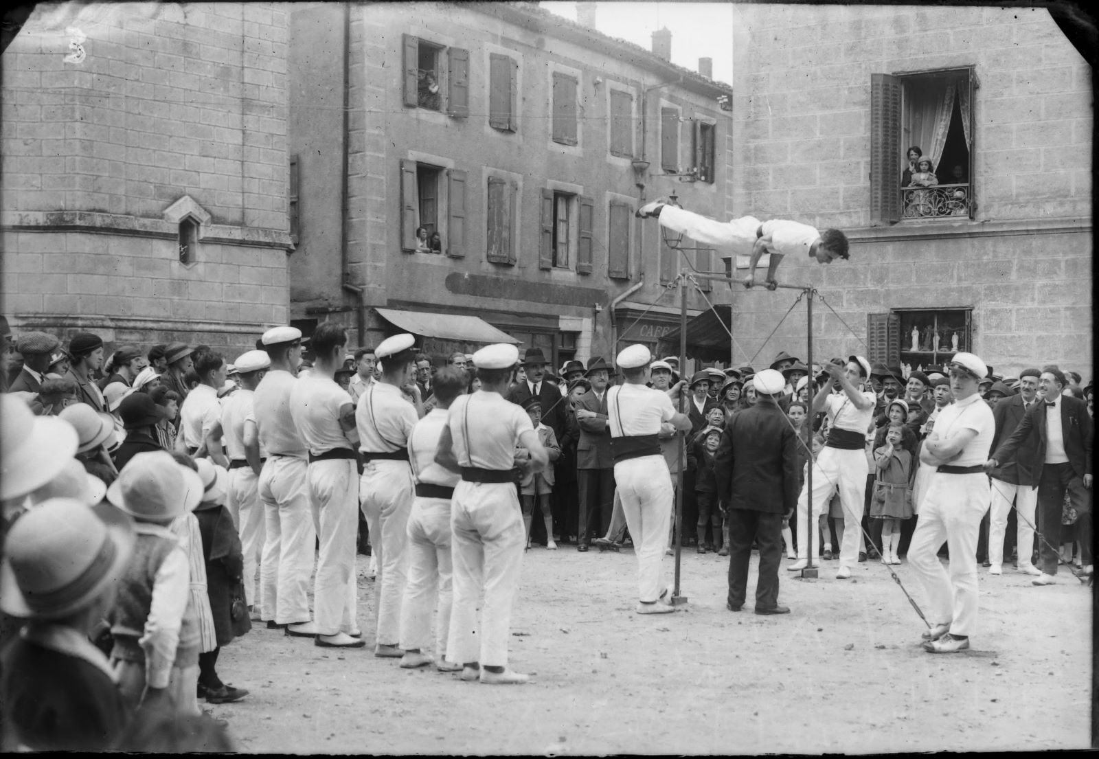 Elles témoignent d’une démonstration spectaculaire de gymnastique qui s’est tenue sur la place Marrel et qui, à l’évidence, a attiré du monde. Mais les responsables des Archives s’interrogent sur la date de la manifestation et ce qu’elle célébrait : l’inauguration de la place ? Un concours ? Saurez-vous les renseigner ?