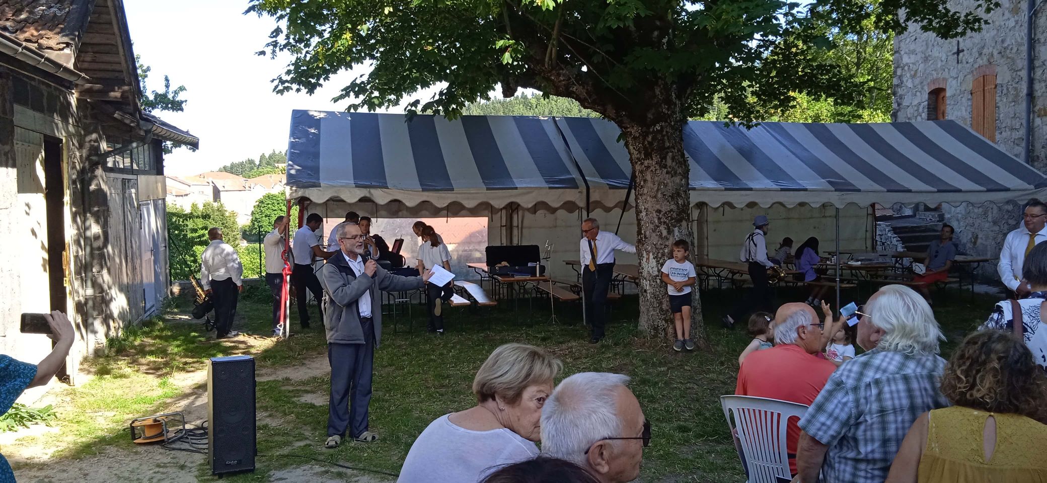 À la sortie la Lyre Louvetonne était là, en costume d’été, pour un joyeux concert.