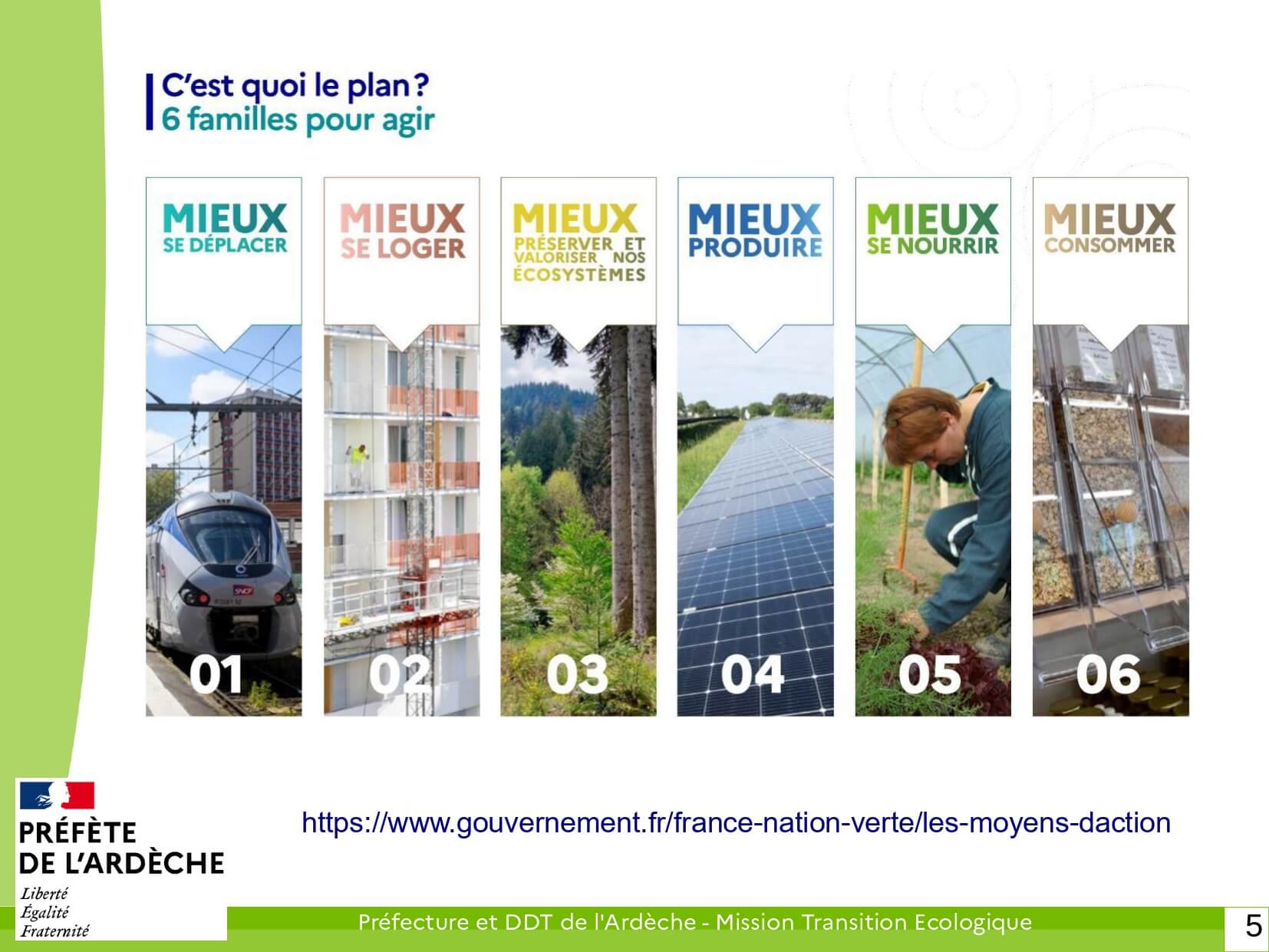 Le vendredi 02 février 2024, la préfète de l’Ardèche a associé les services de l’État, les élus, les chambres consulaires, les agences et établissements publics, les opérateurs d’infrastructures énergétiques, les syndicats, les fédérations professionnelles, les acteurs de l’agriculture, de la mobilité et de l’économie sociale et solidaire, les bailleurs sociaux, les principales entreprises émettrices de carbone et la jeunesse pour créer la première COP départementale ardéchoise.