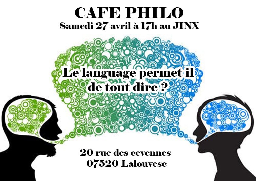 Le prochain café-philo se tiendra le 27 avril à 17h au Jinx. Thème ayant réuni le plus de votes favorables : Le langage permet-il de tout dire ?
