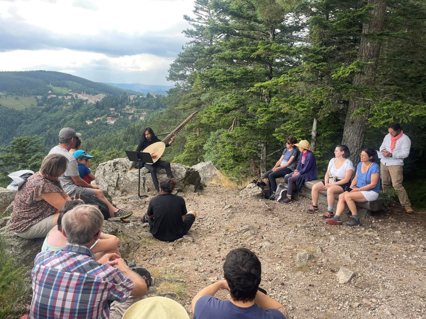 Le Festival Inspiration a rayonné dans différents lieux de la Communauté de communes : !a Chapelle Notre Dame d’Ay où Hanna Salzenstein, « la nouvelle voix du violoncelle », nous a invité à une rencontre imprévue entre deux compositeurs : Bach et Dall’Abaco. Un merveilleux moment de complicité musicale, pour célébrer le violoncelle à la lueur des bougies ; le prieuré de Veyrines où après une randonnée sur des chemins pierreux et un intermède musical magique de théorbe à Rochelipe, les spectateurs ont découvert Farnaz Modarresifar, sa pratique virtuose du santour (instrument iranien de 72 cordes, 18 chevalets, une table d’harmonie) et son travail de composition.