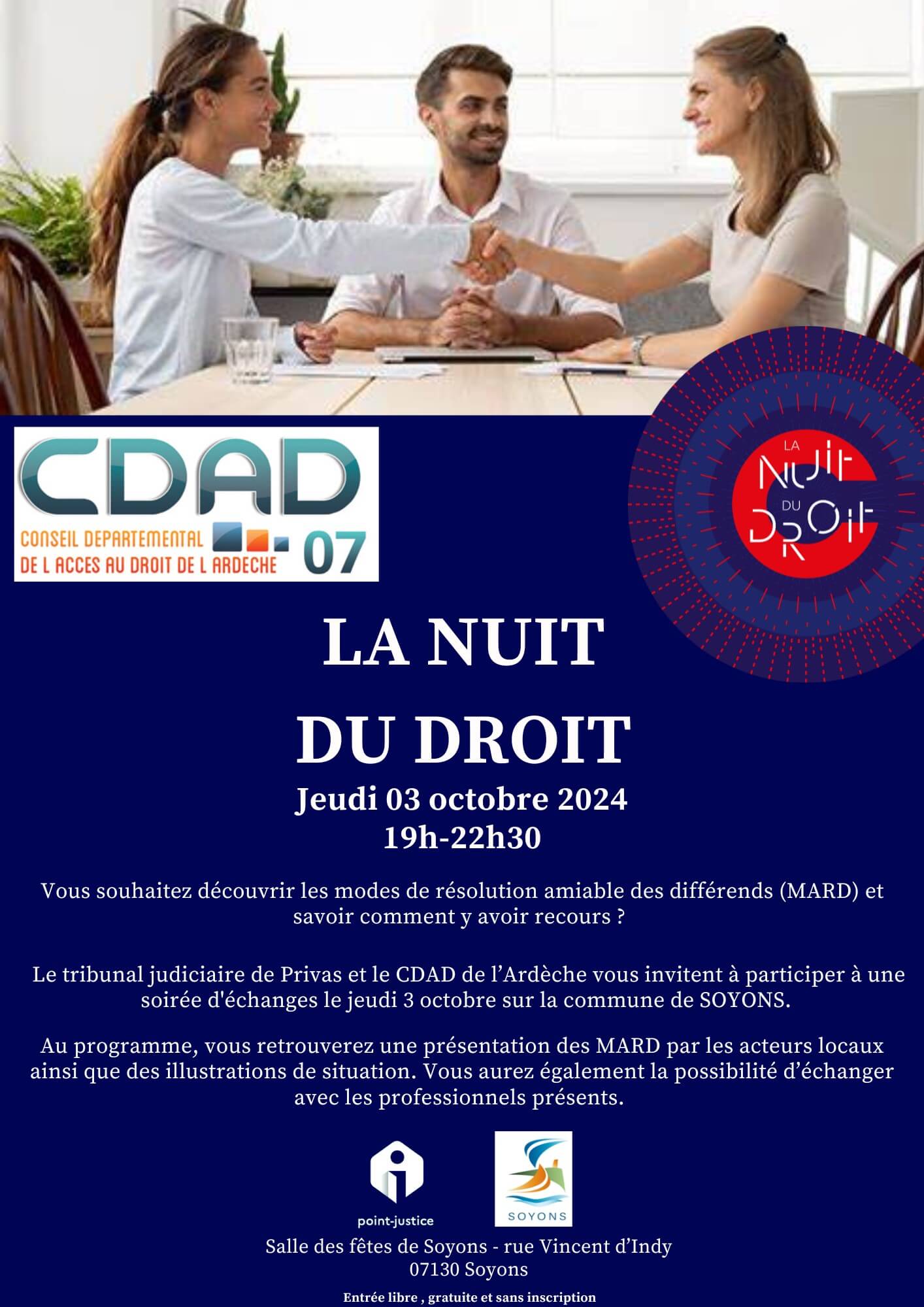 Une nuit du droit est proposée le 3 octobre à Soyons de 19h à 22h15.