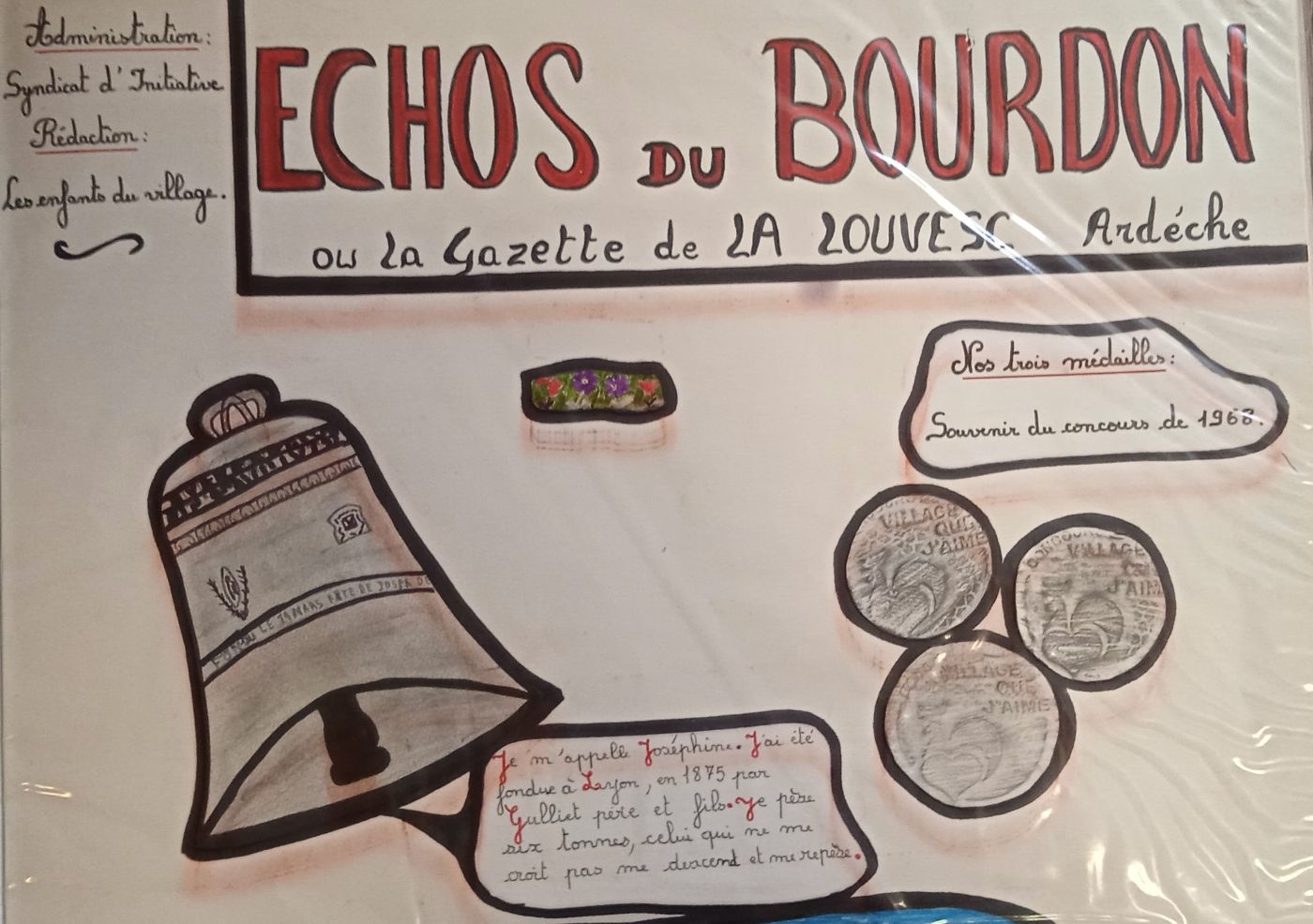 L’OGEC a retrouvé dans les archives de l’école St Joseph l’ancêtre de ce Bulletin, rédigé par les enfants il y a une cinquantaine d’années : L’écho du Bourdon, un cahier très très grand format, racontant en dessins le quotidien du village.