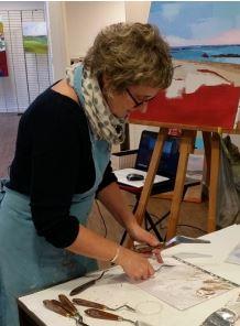 Souvent ce sont les paysages du bord de mer qui couvrent la toile… Là où je vis, je respire chaque jour l’odeur d’iode et de goémon… et m’absorbe dans ces vastes horizons de mer, de dunes…