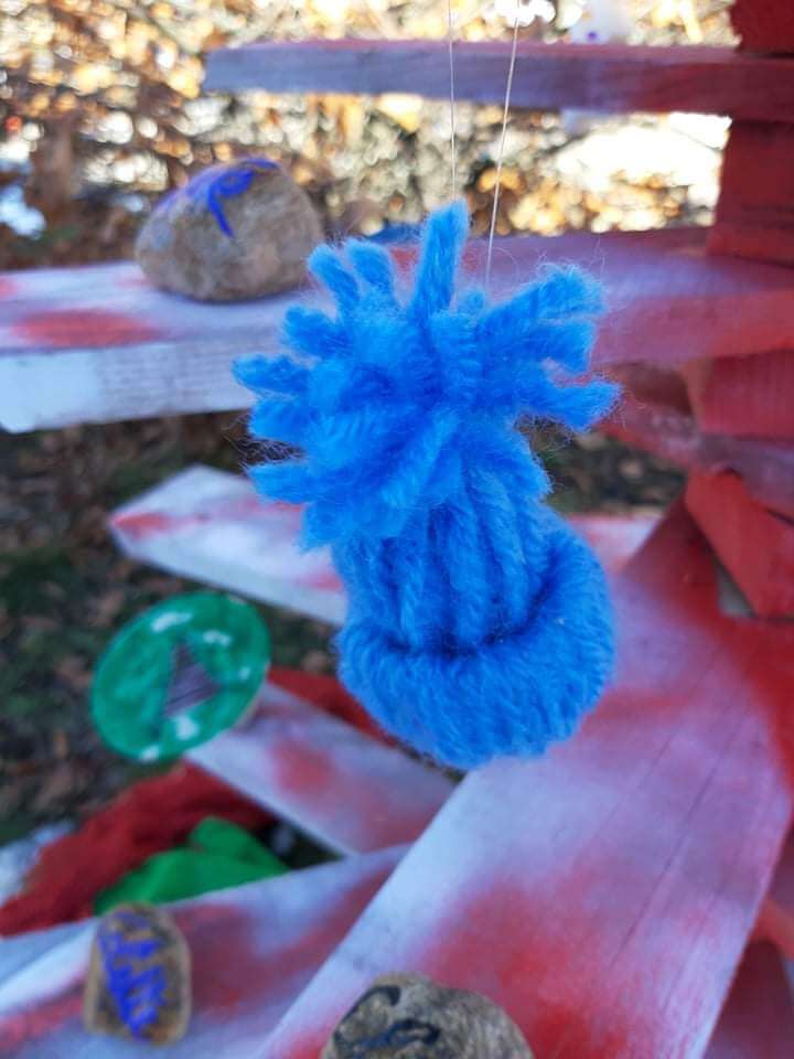 A côté du square de la place du Lac, les animatrices de la Maison du Balcon des Alpes ont disposé les décorations fabriquées par les résidents.