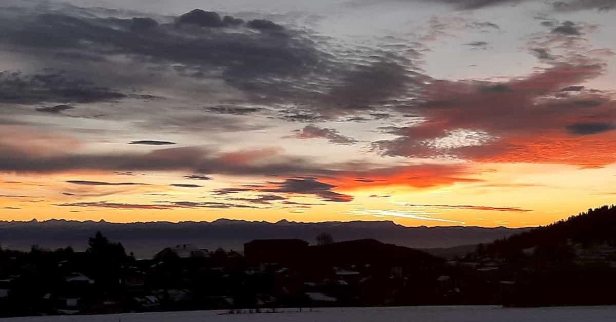 Lalouvesc, sur un col à 1.000 m, au-dessus des nuages, bénéficie du soleil depuis son lever sur les Alpes…