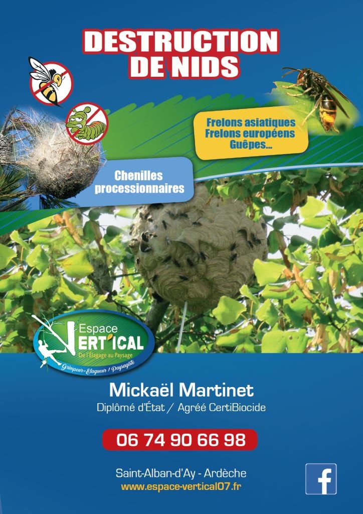 Un professionnel récemment homologué pour la destruction de nids de frelons à St-Alban-d’Ay. 06 74 90 66 98.